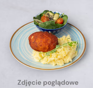 Klasyczny kotlet schabowy, ziemniaki gotowane, sałatka sezonowa -